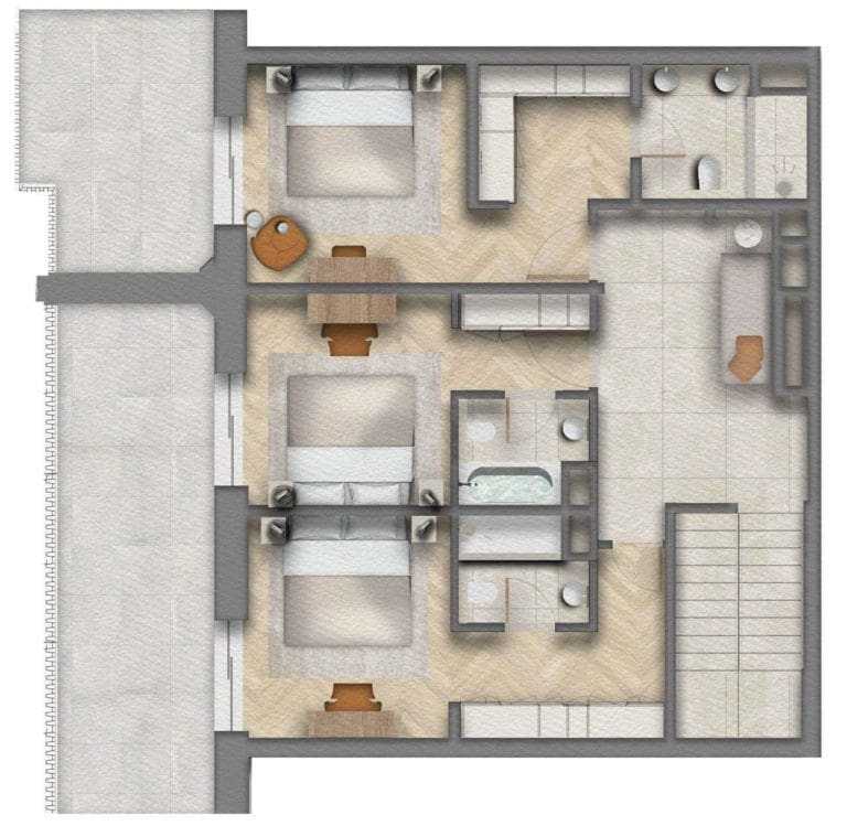 Apartments with 1-3 bedrooms, some of which include garden access, and duplexes with 2-3 bedrooms are available for purchase here.