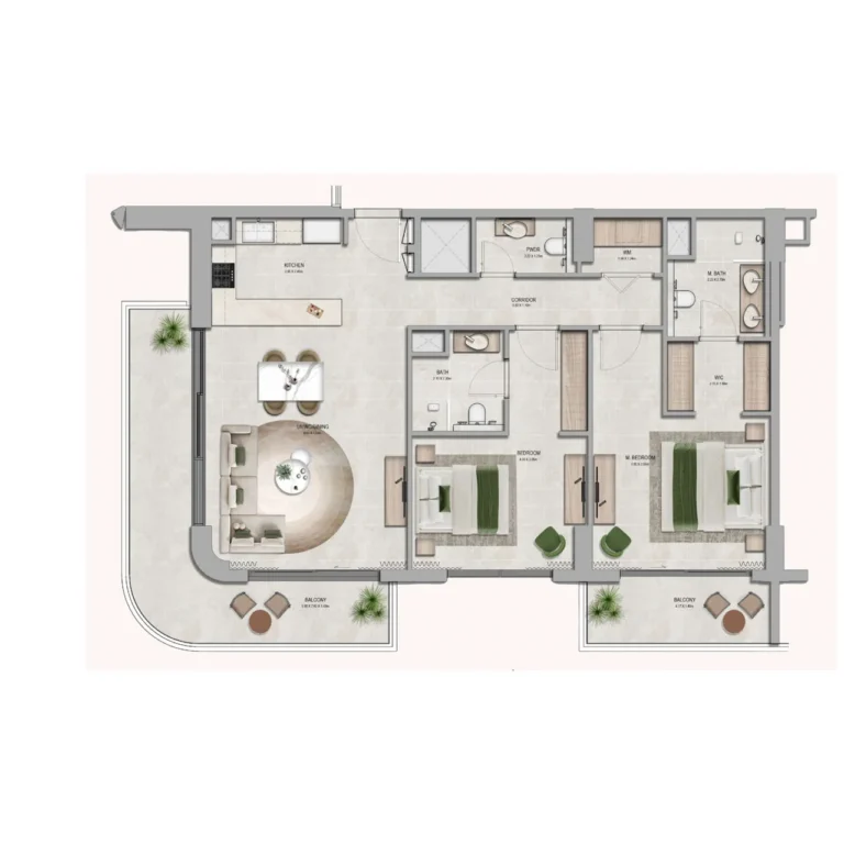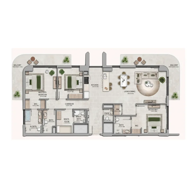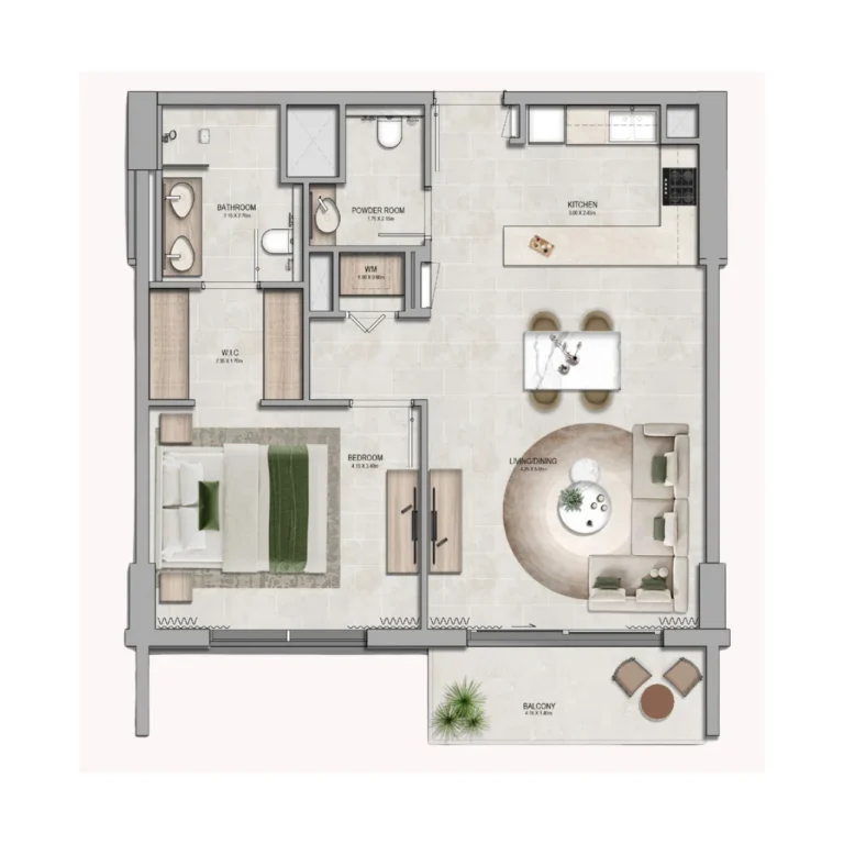 Yas Riva Residences offers studios, 1-, 2-, and 3-bedroom apartments, with unit sizes ranging from 47 to 187 sq.m.