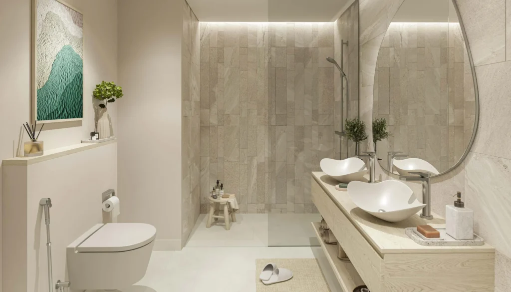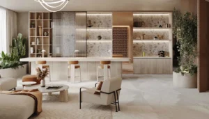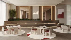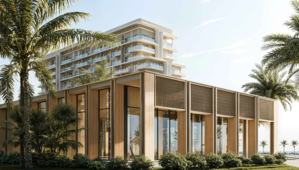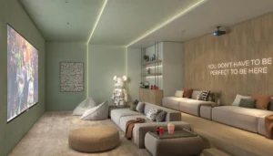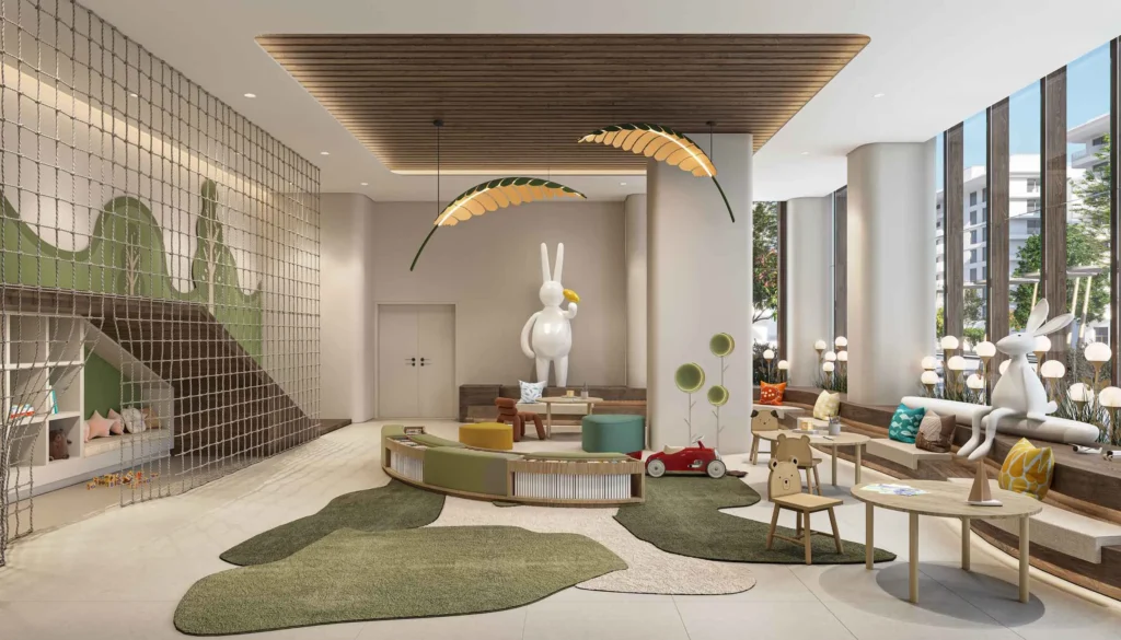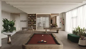 For year-round activity, Yas Riva Residences incorporates social, recreational, and family-oriented areas such as a social kitchen, pool café, multipurpose lounges, kid-friendly areas, and outdoor sports courts.