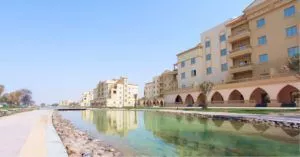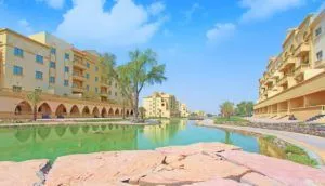 Yasmin Tower is a residential complex located in the remote, picturesque community of Ras Al Khaimah, Yasmin Village. The development consists of two mid-rise buildings. The project was developed by Uniestate and offers apartments that are suitable for families with children. Units have affordable purchase and rental prices. The community is situated near a lake and the Al Hajjar Mountains, which offer residents scenic views. There is a pedestrian promenade along the lake and plenty of green spaces. The buildings’ exteriors are decorated in sand tones, and the interiors feature a light colour palette.