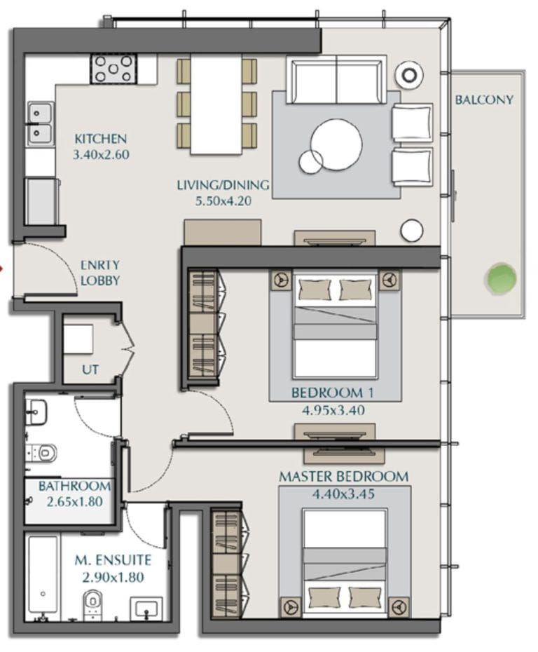 In the first quarter of 2024, the initial cost of an apartment in the complex is AED 1.45M (USD 395K).