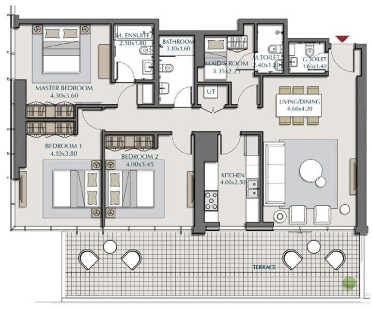 Interested buyers can choose from premium 1-4 bedroom apartments, starting from 743 sq. ft in size. Each apartment has a balcony or terrace where you can admire magnificent views of Zabeel Park.
