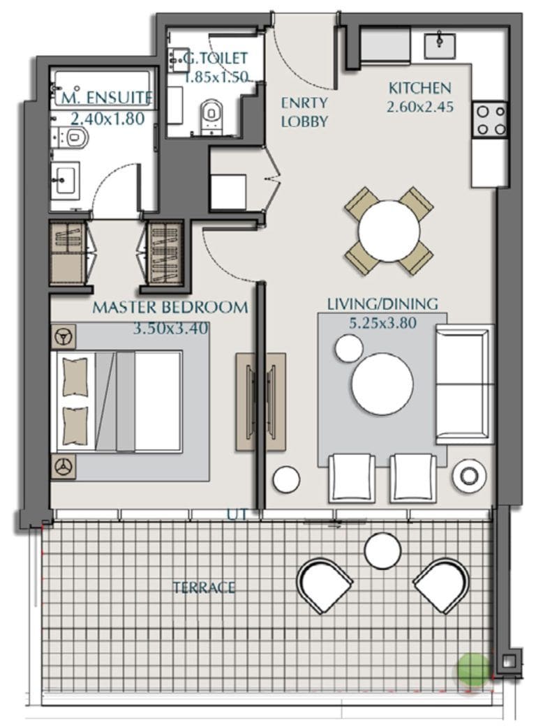 The developer offers a convenient 40/60 payment plan with a 5% deposit upon booking. You can sell your property at a higher price in the future.