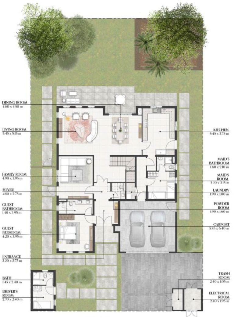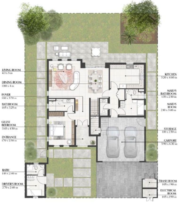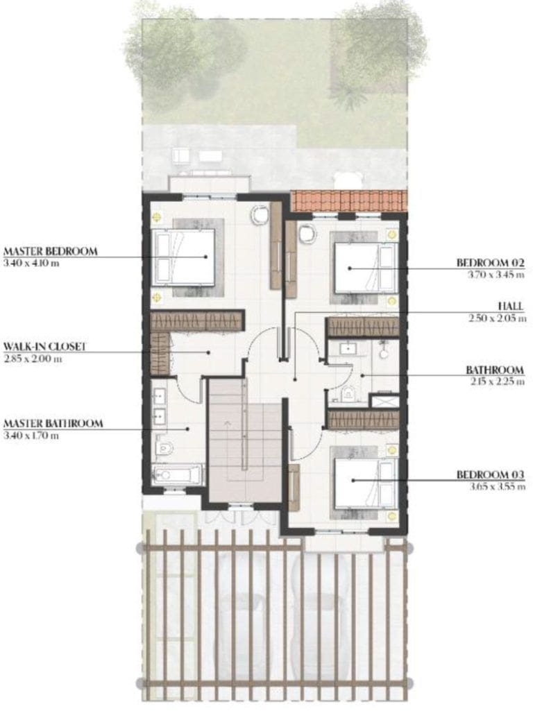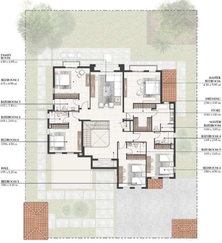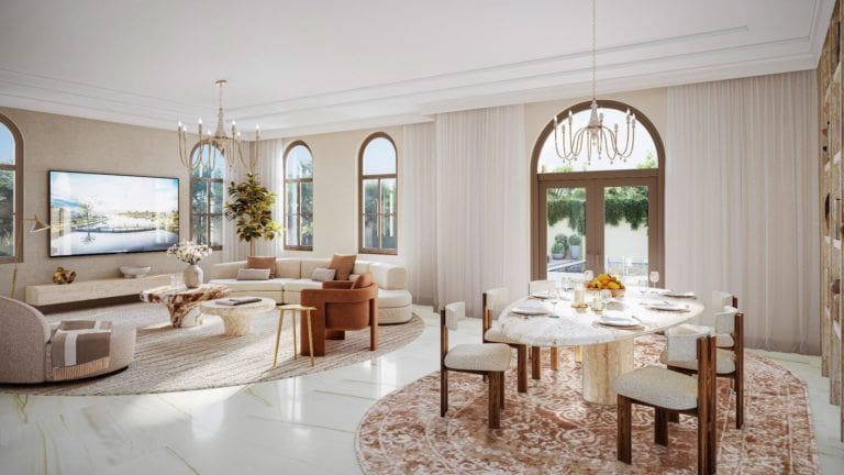 Bloom Living Seville features an exclusive collection of 410 residences, offering cosy 2-3 bedroom townhouses and luxurious 3-6 bedroom villas. Property sizes range from 1,302 sq. ft to 5,500 sq. ft. Mediterranean aesthetics are implemented in the finishes and in every detail of the interior design. Eye-catching elements include elegant marble with sophisticated patterns and natural wood in light shades. The semi-open kitchens are fitted with high-quality furniture and appliances. The bedrooms come with built-in wardrobes, and the master bedroom includes an adjacent dressing room. The layout of the townhouses feature a maid's room, while the villas offer a driver's room.