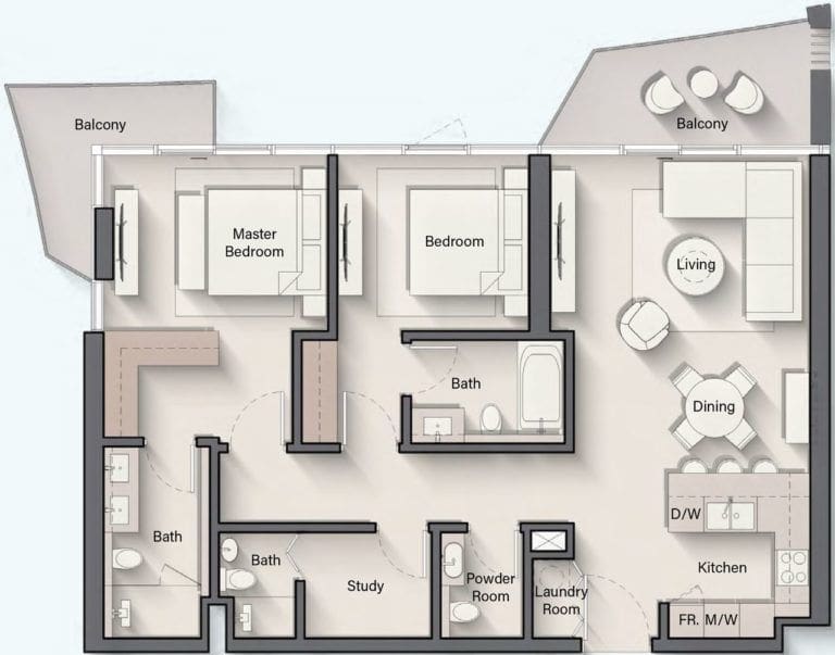 所有三居室公寓和部分两居室公寓均设有书房,非常适合远程学习或工作的人。厨房配备了顶级电器。