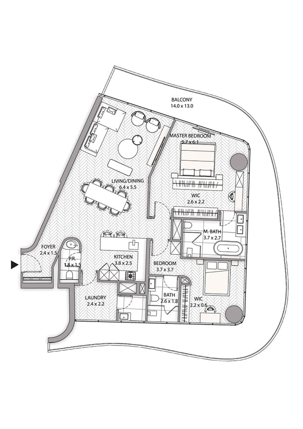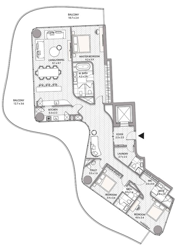 该项目位于阿布扎比热门地区Al Reem岛,基础设施发达,交通便利。该地区以其风景如画的自然风光以及靠近酋长国所有主要景点的位置吸引着游客。它拥有舒适生活方式所需的一切——海滩、购物中心、餐厅、超市、托儿所、学校和休闲场所。扎耶德国际机场距离住宅有30至40分钟车程。