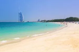 10分钟即可到达朱美拉海滩(Jumeirah Beach)的免费公共海滩。冲浪爱好者以及其他水上运动爱好者可以前往距离该地点15分钟路程的风筝海滩(Kite Beach)。他们可以在这合理聘请一名教练并租用水上运动设备。海滩还设有游乐场和运动场、滑板公园以及咖啡馆、餐馆和酒吧。人们可以欣赏到阿拉伯塔酒店(Burj Al Arab)的壮丽景色,也可以在海滩欣赏到七星级帆形酒店。