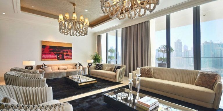 物业提供两种装修风格选择 – 经典和现代。经典版本采用法国米色Serpeggiante大理石。现代风格则包含奶油色大理石地板和深胡桃木色调的家具。房产购买价格从19,800,000迪拉姆(约人民币3895万)起。年租金从650,000迪拉姆(约人民币127万)起。