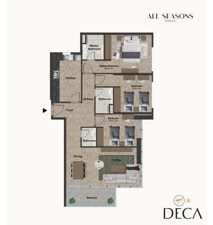 "All Seasons Residence是Al Zarooni Development在迪拜体育城这一充满活力的社区中打造的一座引人注目的住宅楼。该项目提供从409平方英尺到1399平方英尺不等的一室到三室公寓(38-130平方米),配备宽敞的阳台,而两居室公寓还包括专用的员工住处。此外,该开发项目还将特设四间客用住宅——Garden Suites,这些住宅可直接通向精心设计的花园,住户可免费预订使用。