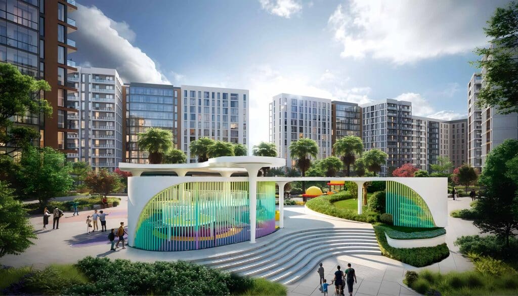 设有专门建造的露天剧场,作为社区的文化核心,举办活动并促进邻里联系,为社区生活增添了独特的社交维度。