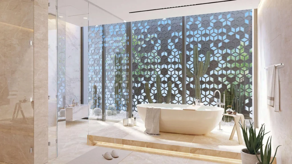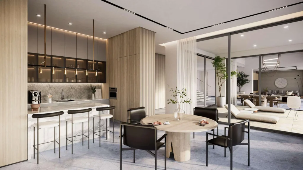 Nakheel Properties的The Coral Collection位于壮观的杰贝阿里棕榈岛。这个超豪华的综合体设有三层别墅,拥有7间卧室。别墅面积从11,216平方英尺到12,163平方英尺不等(1042-1130平方米)。有几种立面风格可供选择:Hibiscus, Coral Living, Red Aurora, Porcelain Rose, Cranberry Sky, Terracotta, Redwood, 和Ruby Sunset。 您可以选择街道一侧或海滨的别墅。布局包括私人游泳池、露台、户外用餐区或烧烤区、阳台、步入式衣橱、化妆间、洗衣房、储藏室、屋顶休息室、司机和员工房间、车库和电梯。部分住宅将设有办公室和媒体室。 对住宅内部的装修特别注重 —— 采用自然色调,包括珊瑚色、棕色、蓝色、米色、藏红花和灰色。装修材料将使用优质自然材料,包括木材、大理石和原石。.