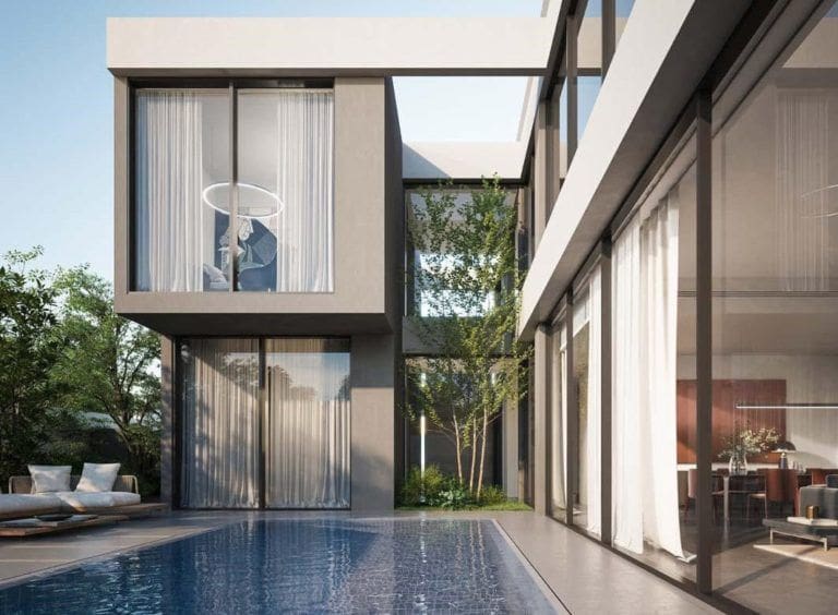 Kaya is a project based on the teachings of Vastu Shastra, which means that layouts were designed in relation to the movement of lunar and solar energies. Rooms are positioned to take into account natural light and the surrounding natural elements. Layouts were designed to bring comfort to the body, happiness to the soul, and tranquillity to the mind. Four-bedroom villas cover an area of 5,000 sq. ft. and are adjoined by garden terraces and swimming pools. Residents can also enjoy easy control of the air conditioning and lighting. Villas have a starting price of AED 1,950,000 (USD 510,000).