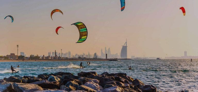 Kite Beach is one of the emirate’s best public beaches which is known for its outdoor activities, kitesurfing, paddleboarding and kayaking. Apart from sun loungers and umbrellas, a fitness center, library, outdoor park, a volleyball court, children’s playground, and a skate park are also located here. Kite Beach is also famous for its restaurants, cafes and colourful food trucks offering both healthy products and fast food.