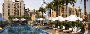 Lamtara consists of a limited collection of 1-4 bedroom apartments. The residential complex is provided with a swimming pool, roof terraces, a BBQ area, a gym and parking areas. The rental price for a 1-bedroom residence is AED 85,000 (USD 23,100) annually.